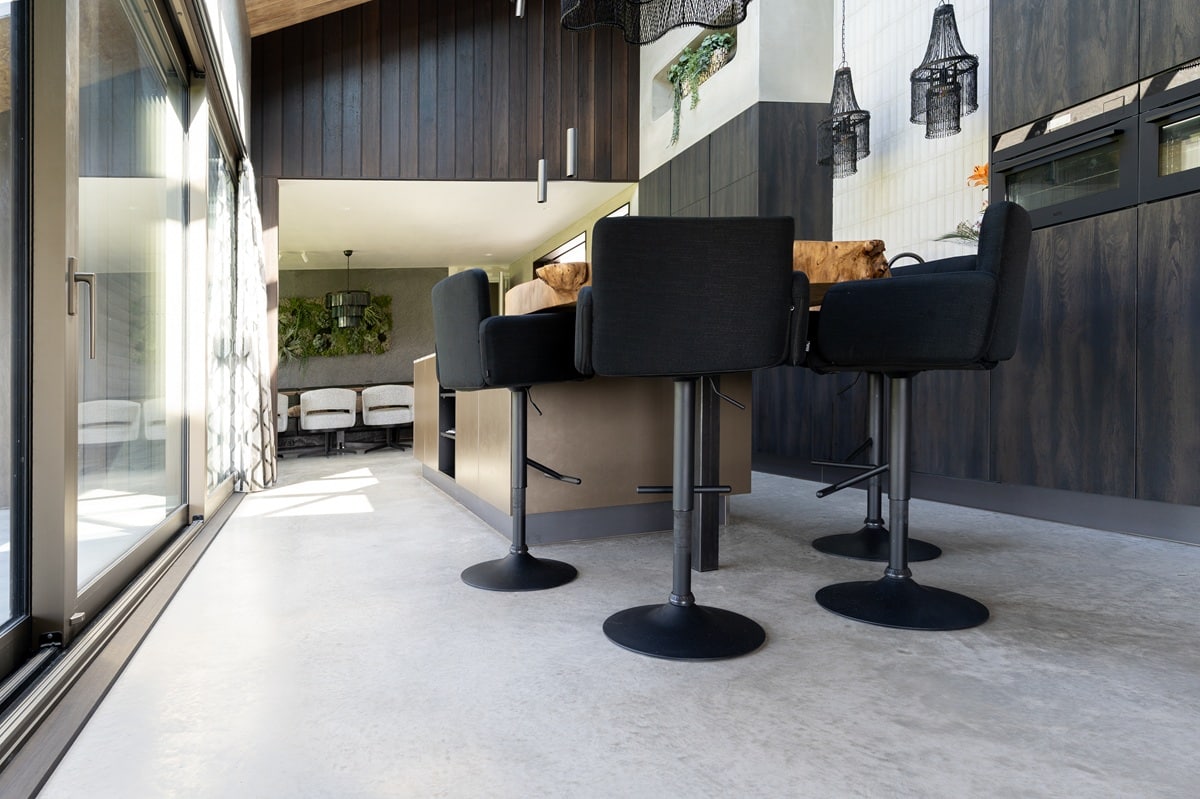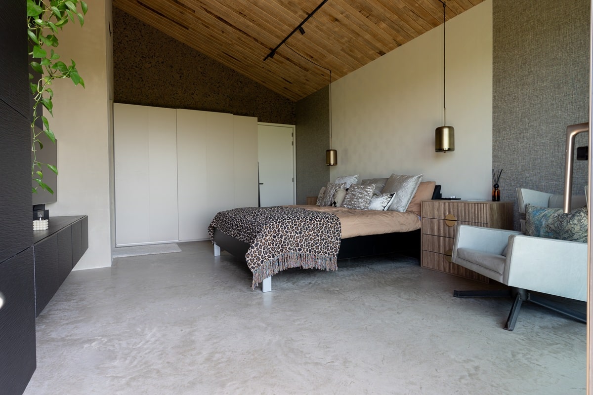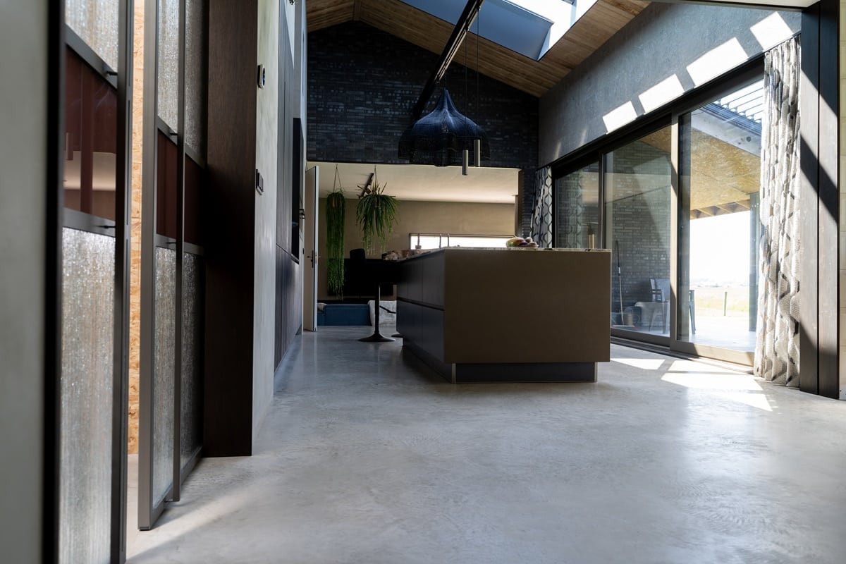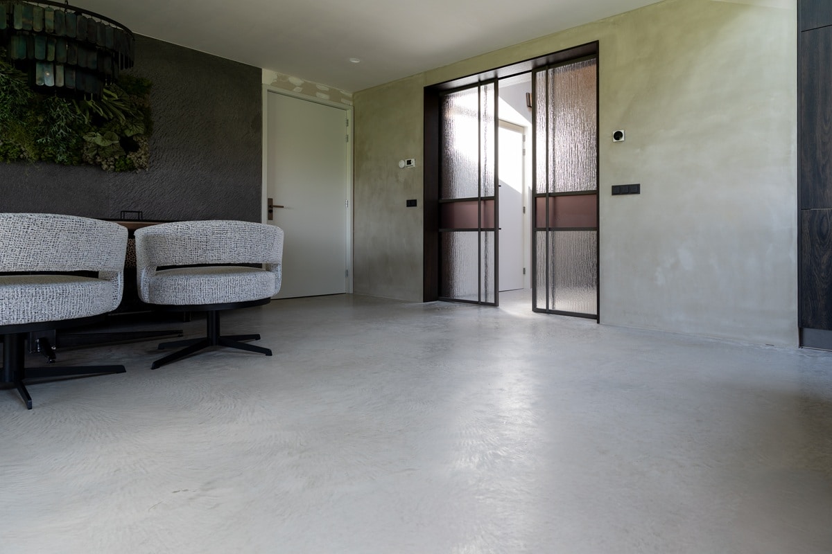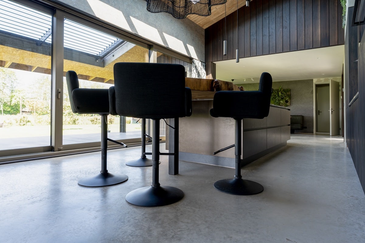 Wonen in een prachtige vrijstaande woning mét uitzicht op de weilanden: wie wil dat nu niet? Bij de realisatie van deze nieuwbouwwoning zijn we vanuit team Bull Woonbeton aan de slag gegaan met de aanleg van een woonbetonvloer én bijpassend terras voor de familie Snijders in Stomptetoren. In de woning is een woonbetonvloer van zo’n 190 m2 gerealiseerd en daarnaast is er 90 m2 aan bijpassend terras aangelegd. Zowel de vloer in de woning als de terrasvloer hebben de kleur ‘Jennifer Sand’ gekregen. Na aanleg hebben we de vloer in 2 stappen gepolijst. Hierdoor heeft de vloer zijn natuurlijke, robuuste elementen behouden!