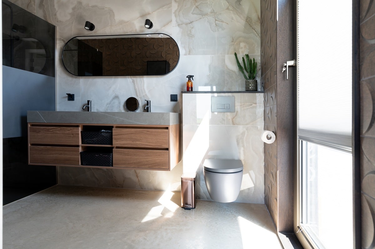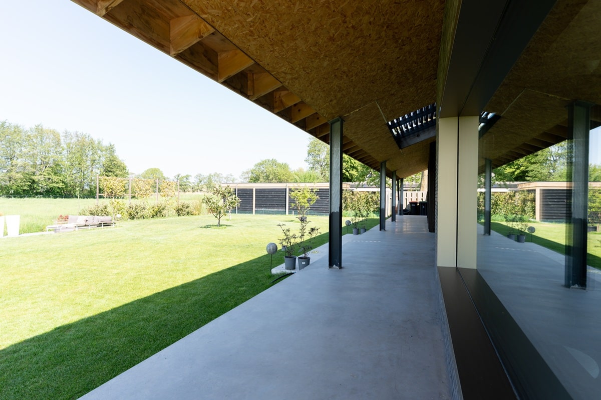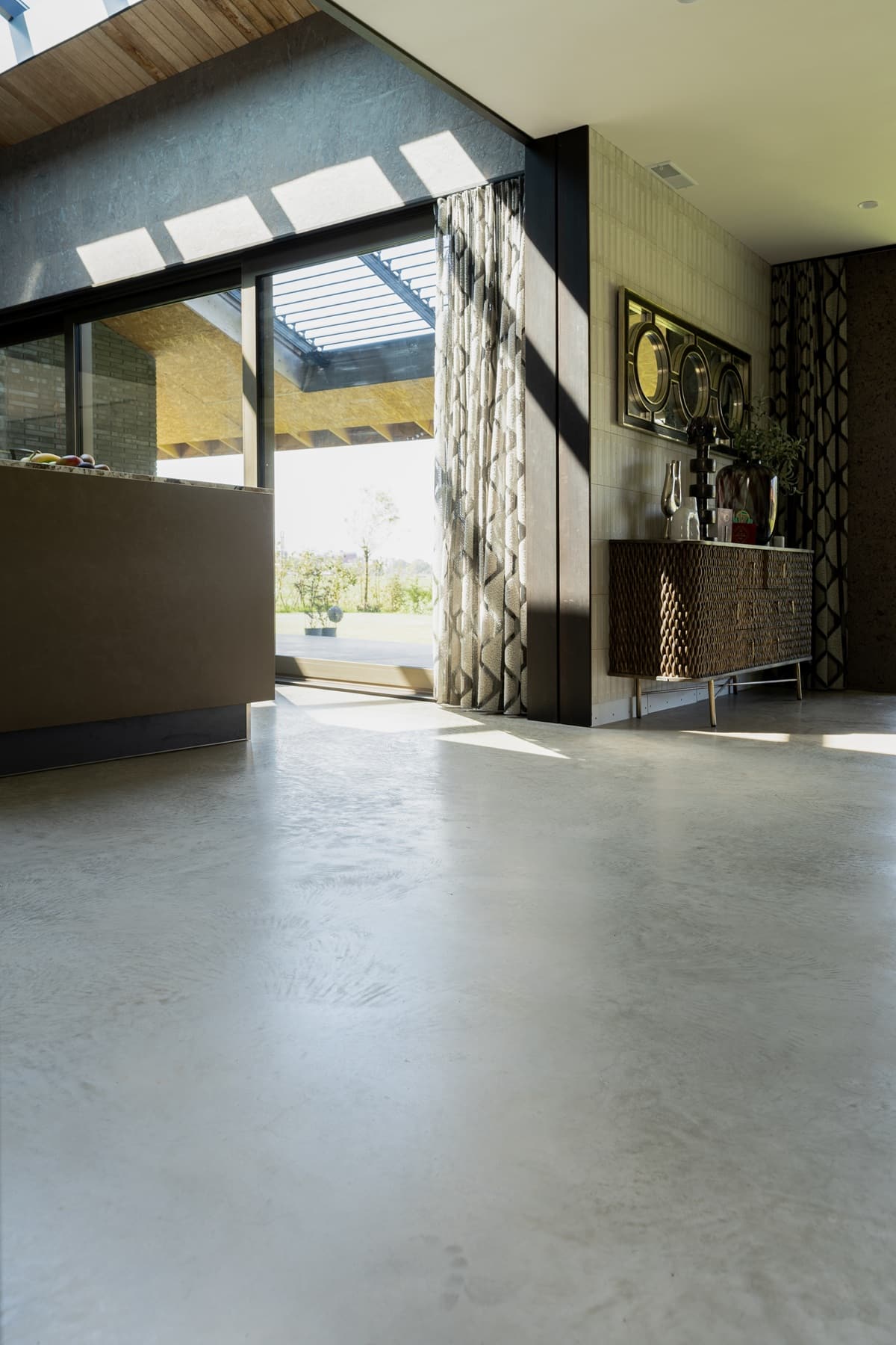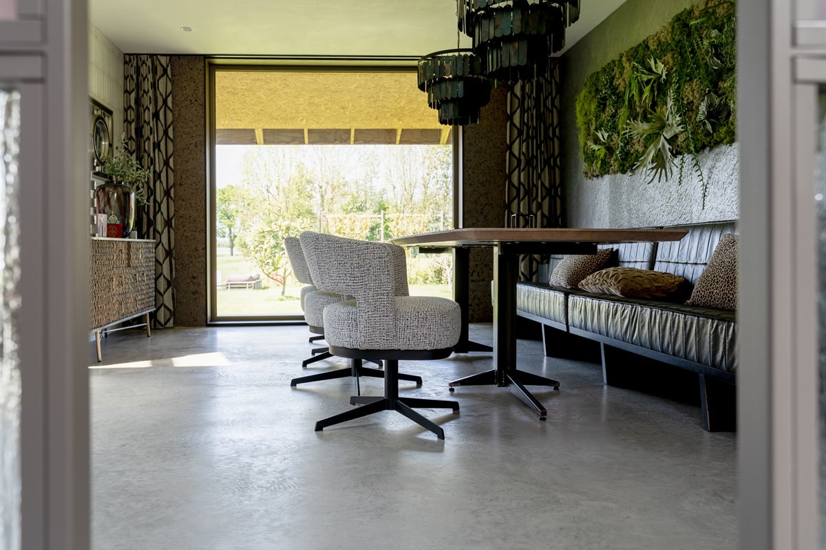Wonen in een prachtige vrijstaande woning mét uitzicht op de weilanden: wie wil dat nu niet? Bij de realisatie van deze nieuwbouwwoning zijn we vanuit team Bull Woonbeton aan de slag gegaan met de aanleg van een woonbetonvloer én bijpassend terras voor de familie Snijders in Stomptetoren. In de woning is een woonbetonvloer van zo’n 190 m2 gerealiseerd en daarnaast is er 90 m2 aan bijpassend terras aangelegd. Zowel de vloer in de woning als de terrasvloer hebben de kleur ‘Jennifer Sand’ gekregen. Na aanleg hebben we de vloer in 2 stappen gepolijst. Hierdoor heeft de vloer zijn natuurlijke, robuuste elementen behouden!