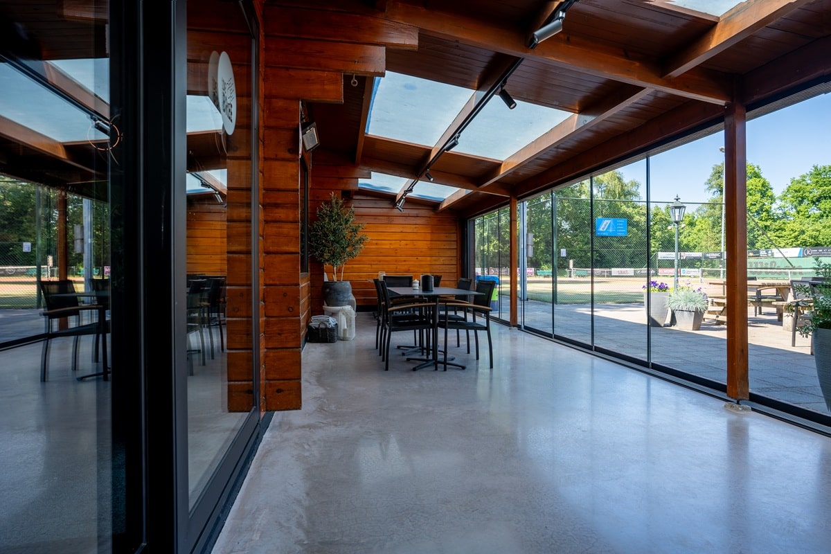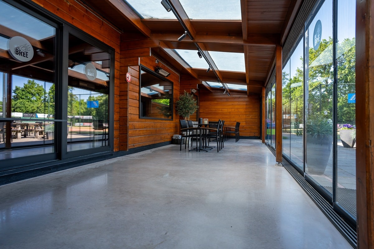 Een onderhoudsarme én gemakkelijk te reinigen vloer? Dan is een woonbetonvloer een geschikte keuze. Zo leverden we onlangs ook een woonbetonvloer voor Tennisvereniging de Bree in Scherpenzeel. De nieuwe woonbetonvloer is geplaatst in de kantine, waar leden regelmatig na het sporten even napraten óf een drankje komen drinken. De tennisvereniging in Scherpenzeel heeft meer dan 280 actieve leden, waardoor de vloer in de kantine relatief zwaar belast wordt!
